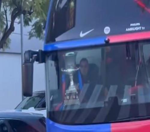 载誉归来,西超杯冠军奖杯已随队抵达巴塞罗那 -